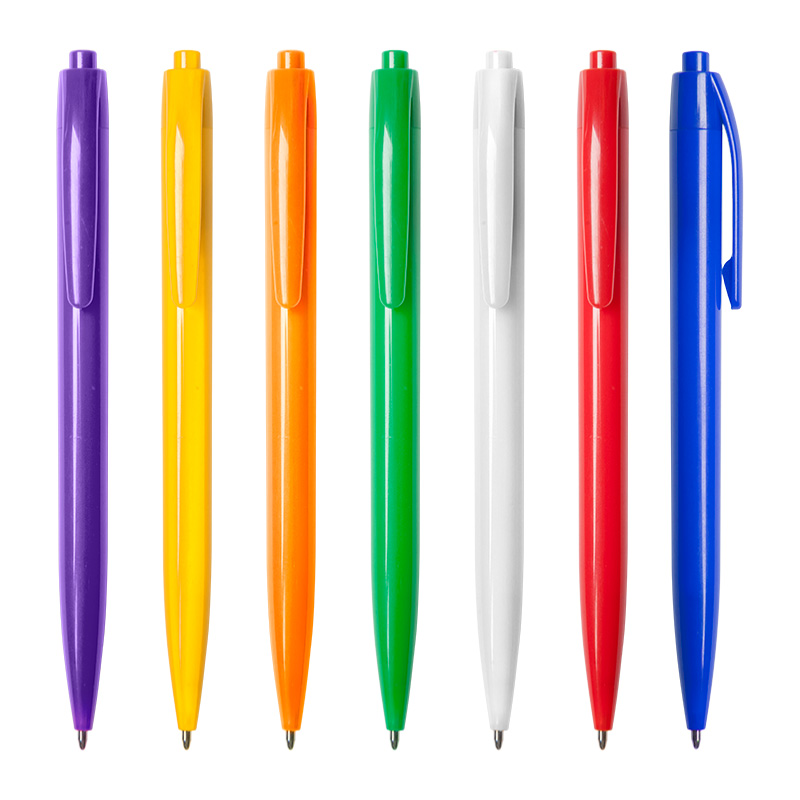 Plástico. Bolígrafo con cuerpo plástico de color con pulsador.