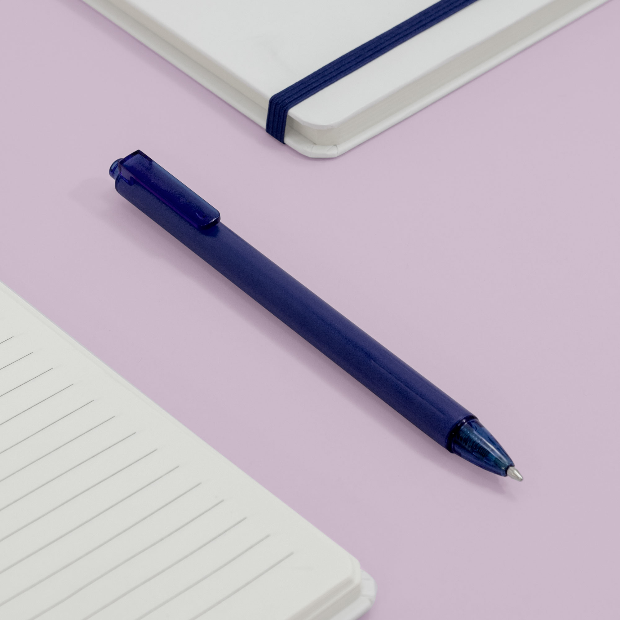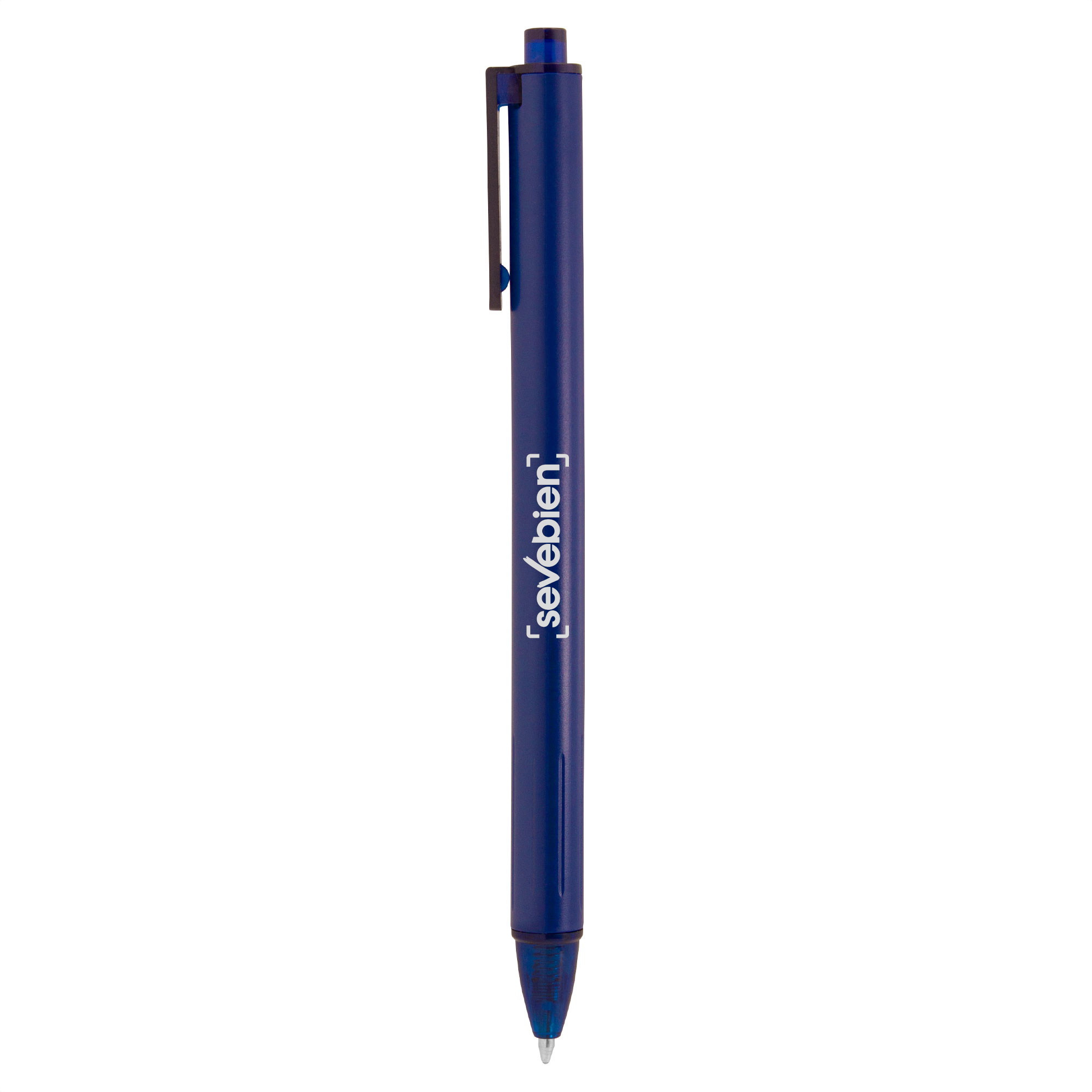 Bolígrafo retráctil. Cuerpo de diferentes colores acabado mate. Pulsador, clip y puntera translucidos del mismo color del cuerpo.