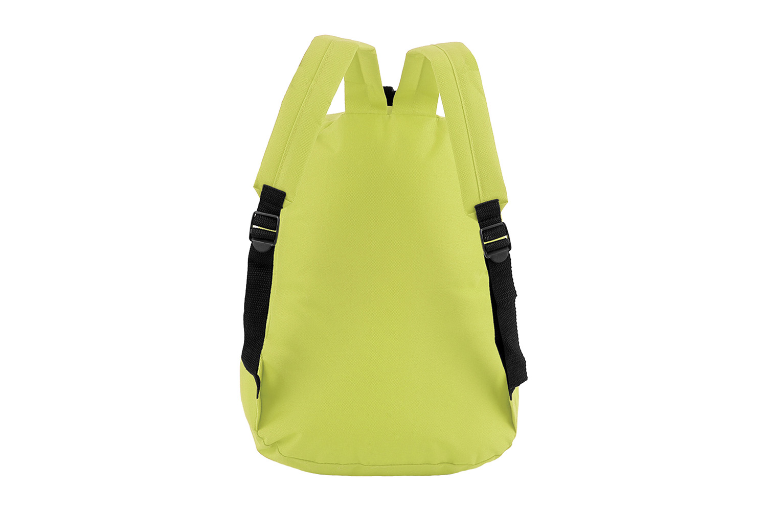 40 x 27 x 11,5 cm. Capacidad 10 litros. Poliéster 600D. Mochila mediana, con bolsillo frontal con cierre.