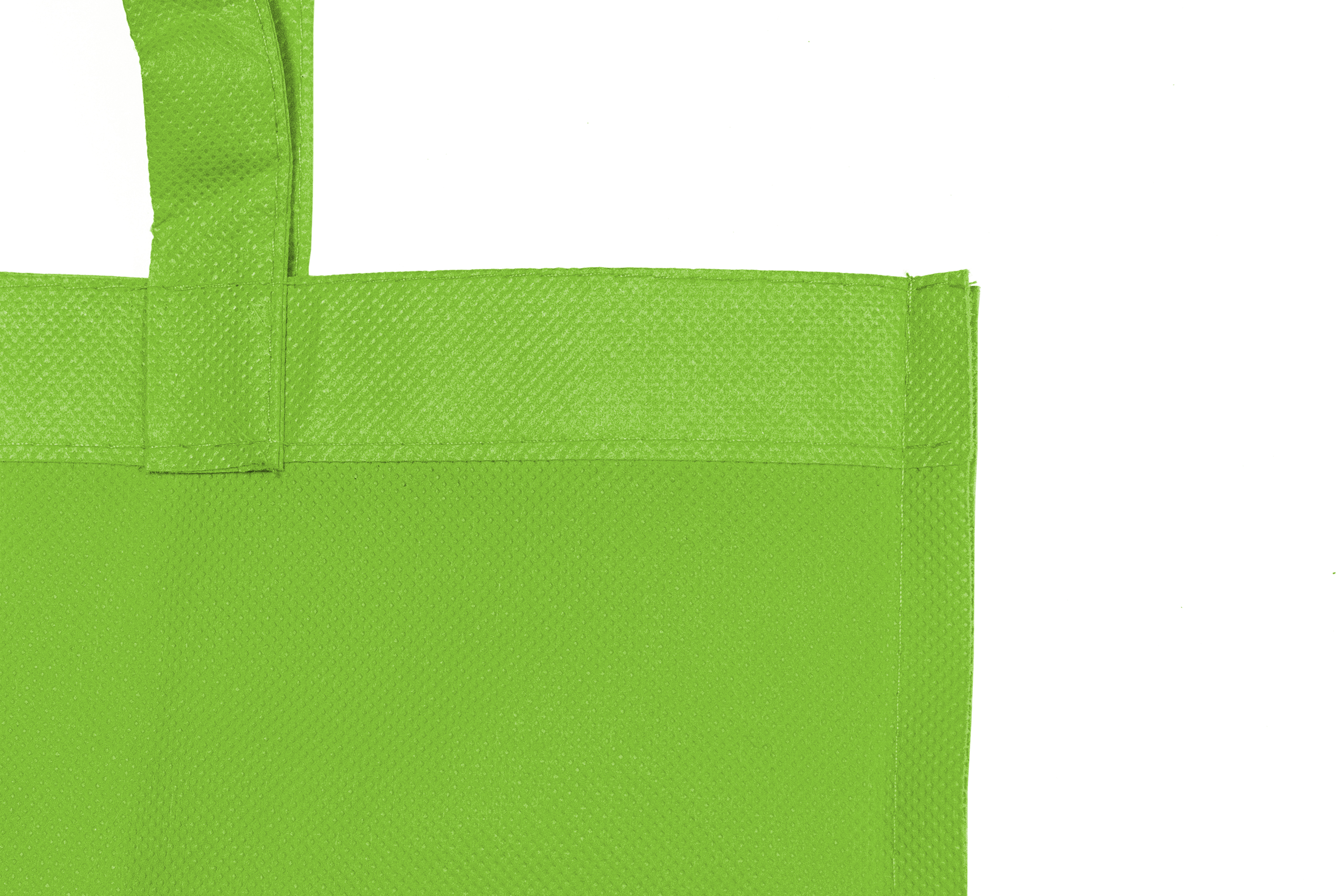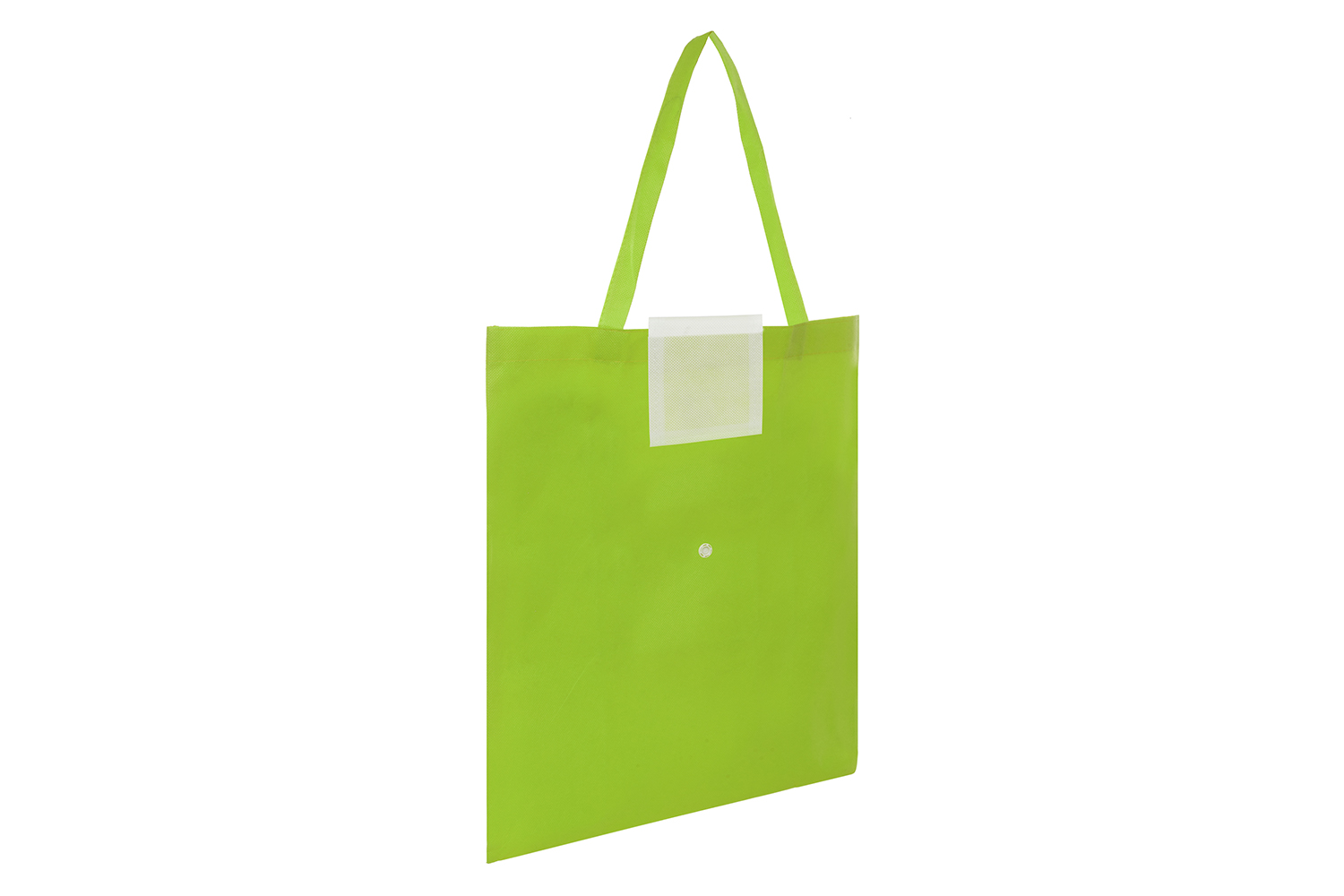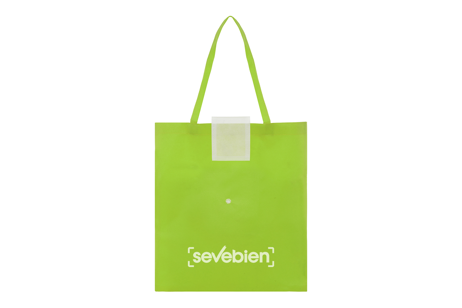 13 x 11 cm. (cerrado) 40 x 34,5 cm. (abierto). Non woven. Bolsa ecológica, posee una solapa color blanco con botón que permite compactar la bolsa. Mayor resistencia debido a que son cosidas.