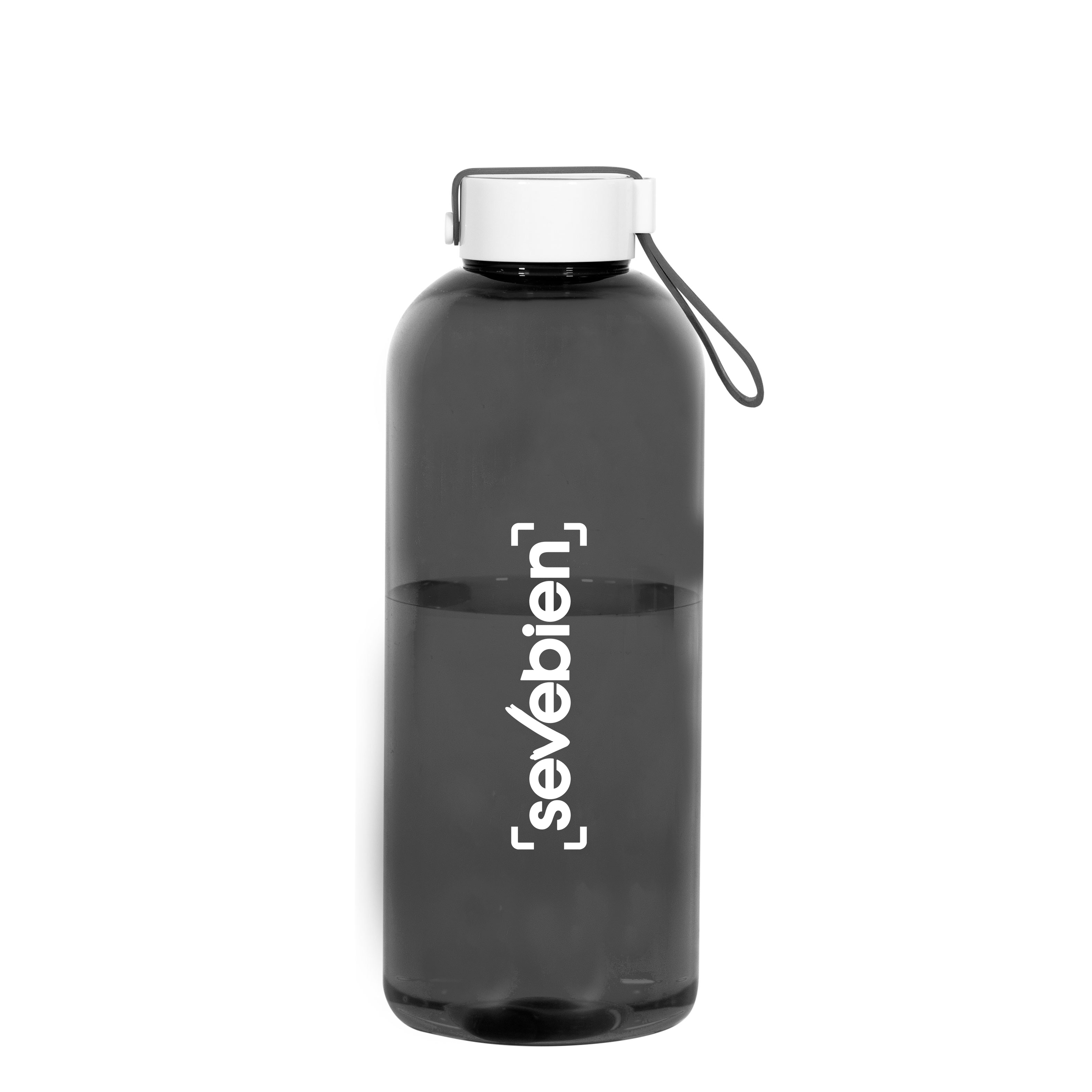Ø 8 x 20,5 cm. Capacidad 810 ml. Plástico PET. Peso del botella: 63 gramos - Peso de la tapa: 12 gramos. Plástico. Cuerpo de color translucido.
