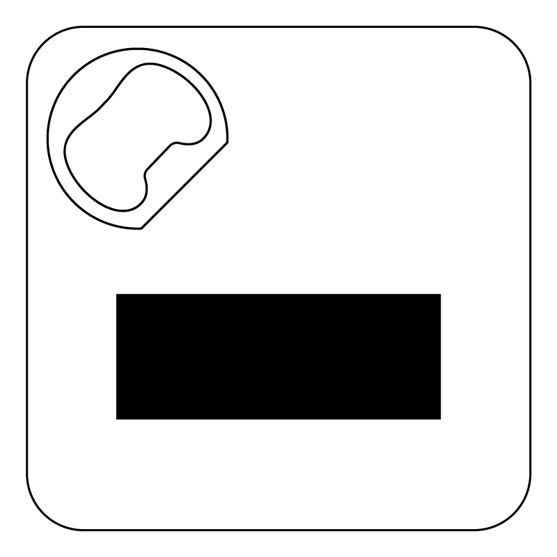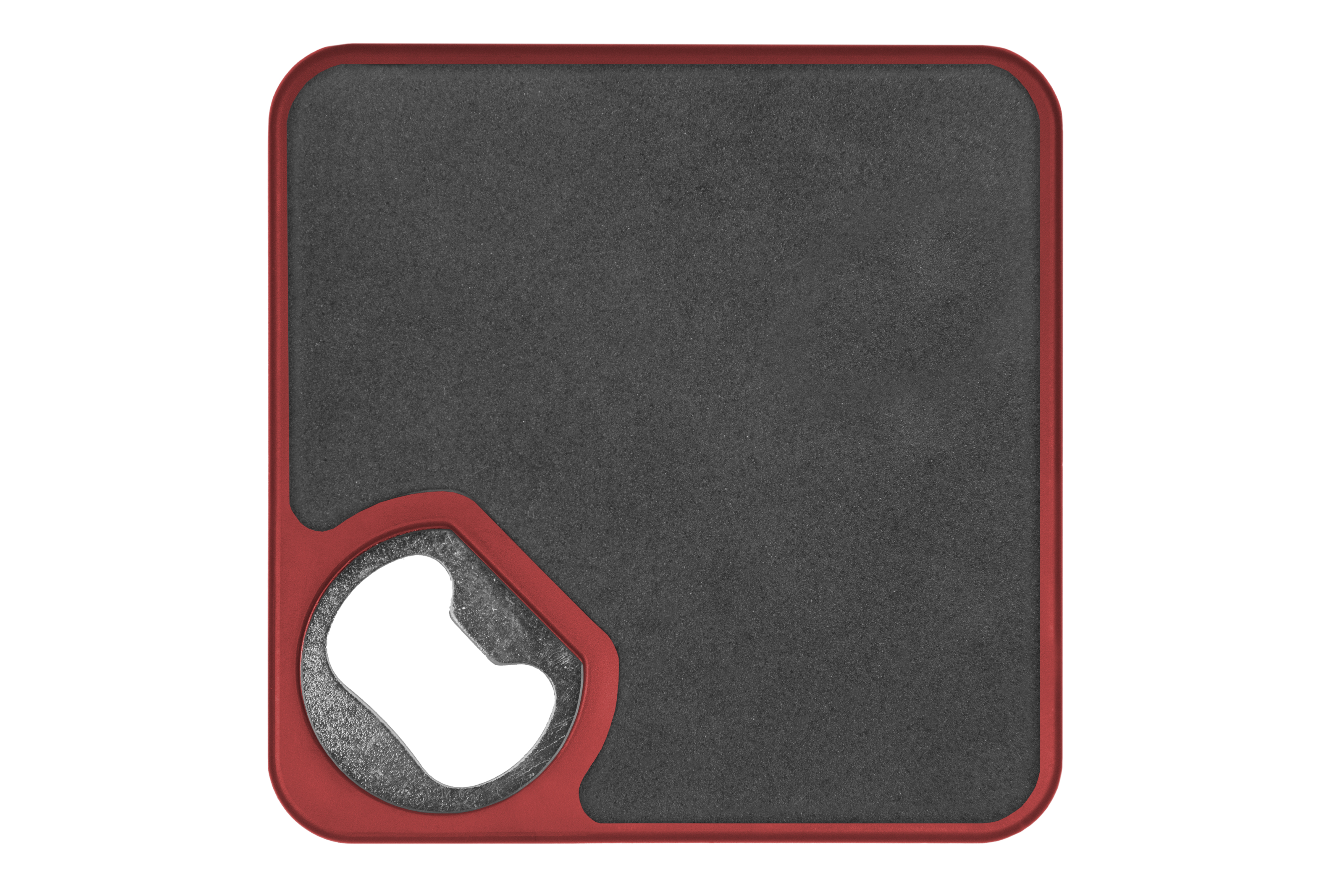 8 x 8 cm. Plástico. Destapador y posavasos. Base de foami como antideslizante.