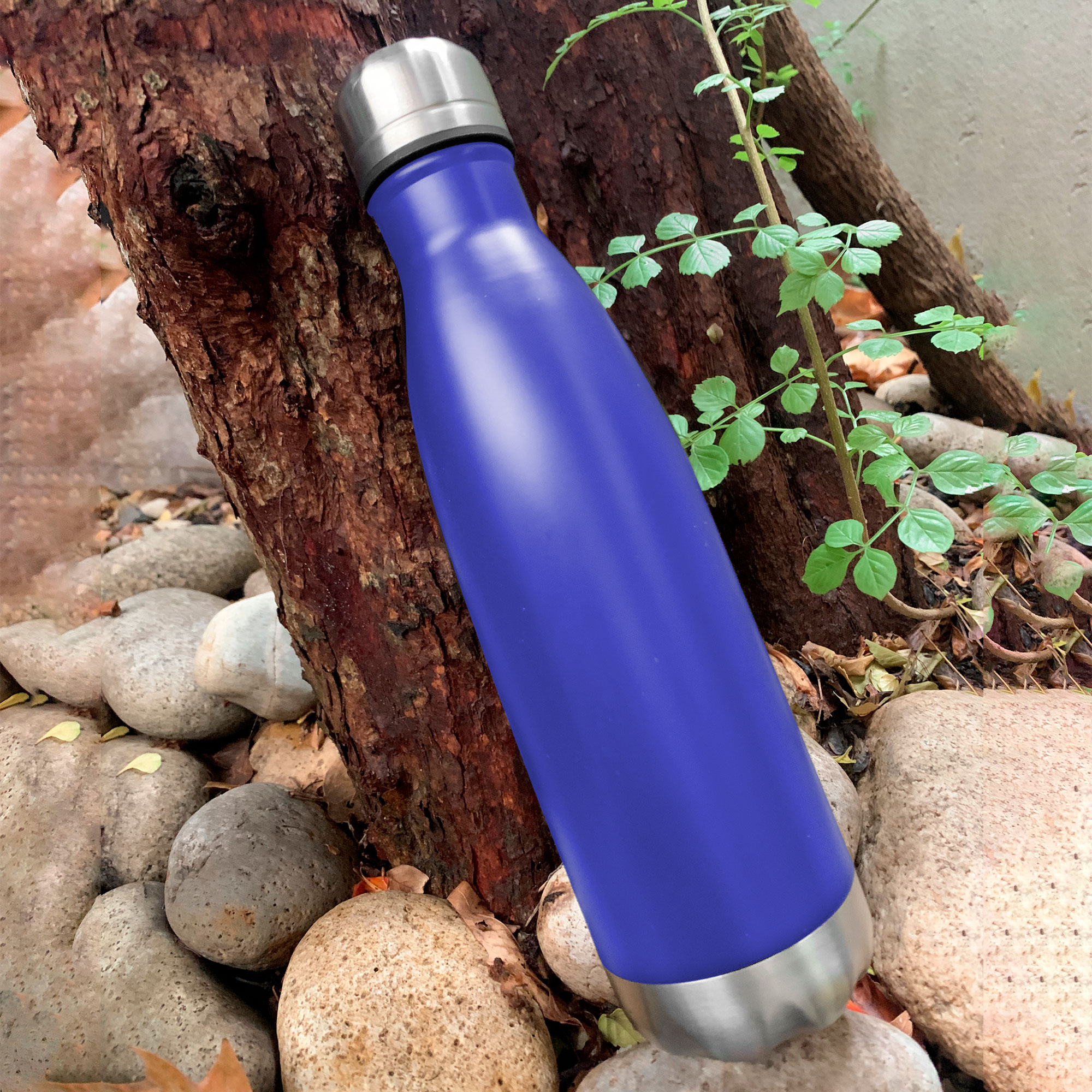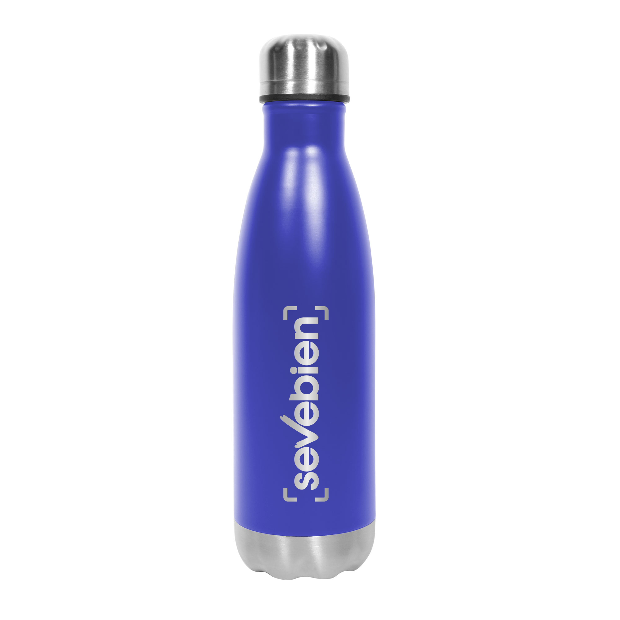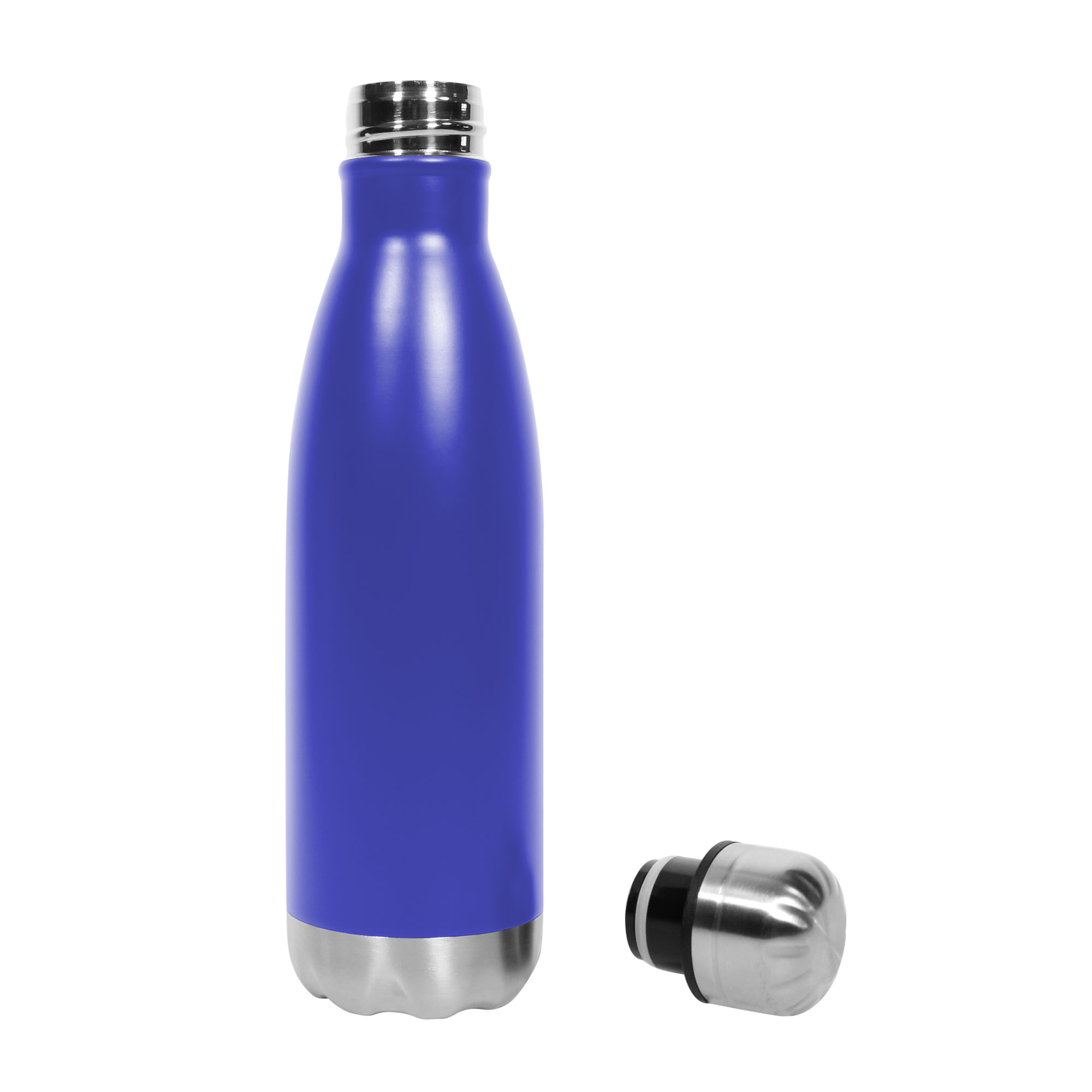 Ø 6,5 x 26,5 cm. Capacidad 500 ml. Acero inoxidable. Botella doble pared, sellada al vacío. Interior de acero 304 y exterior de acero 201. Tapa a rosca y base metálica color plata. Mantiene hasta 12 hs la temperatura de las bebidas calientes y 24 hs de las bebidas frías. Presentación en caja de regalo.