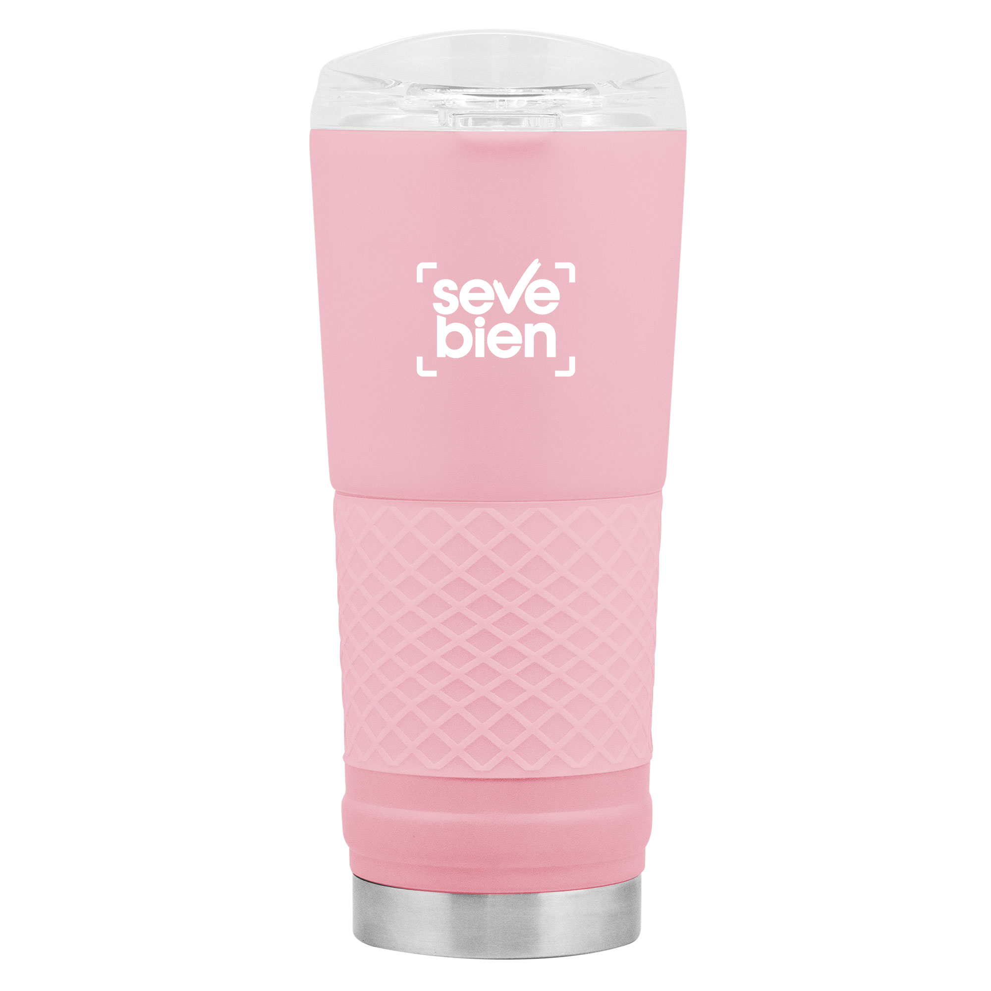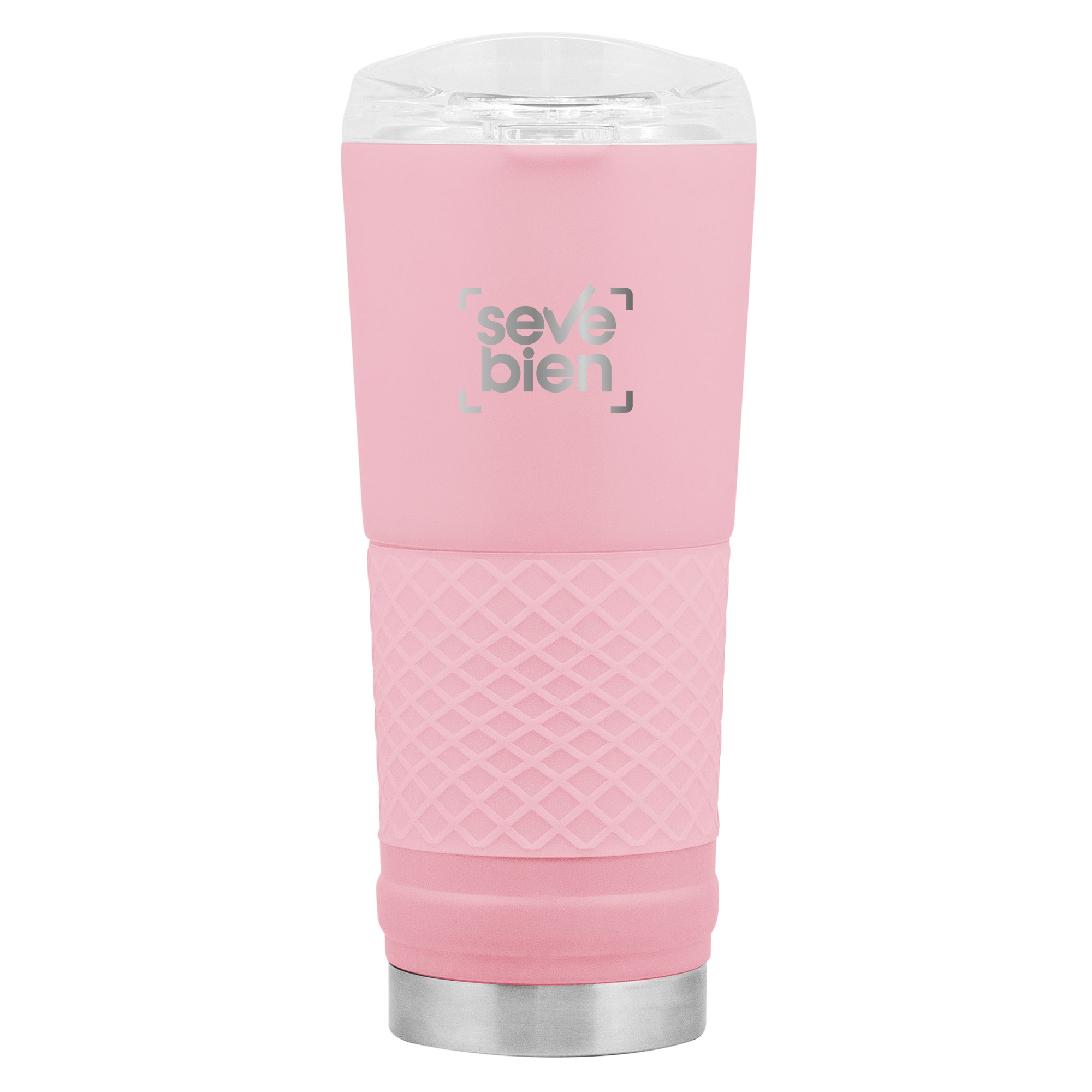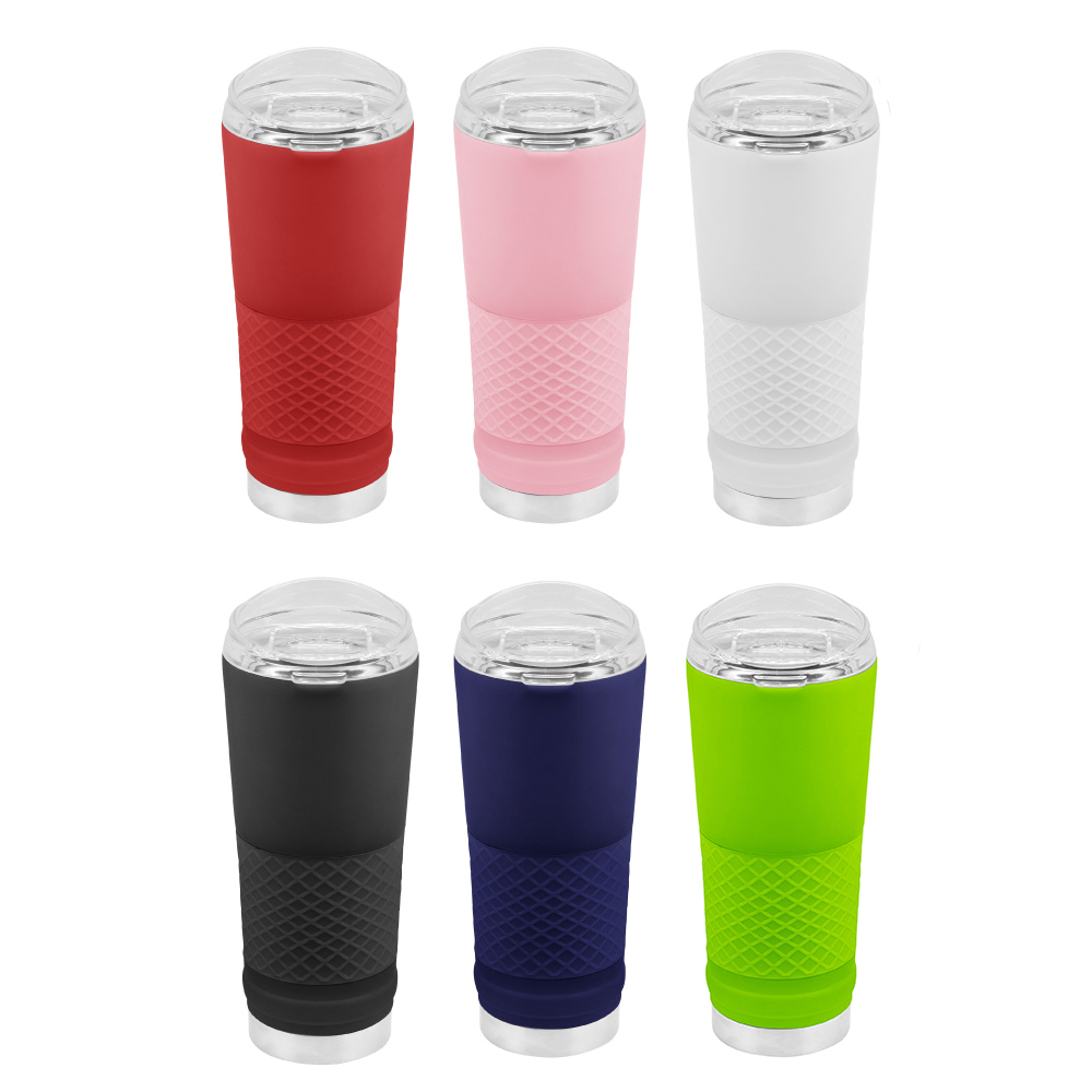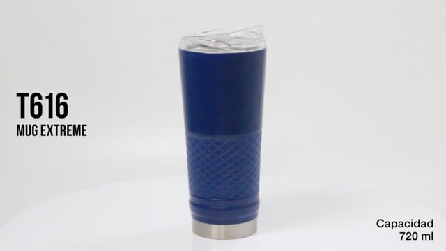 Ø 8,5 x 23 cm. Capacidad 720 ml. Acero inoxidable. Mug doble pared. Interior en acero 304 y exterior en acero 201. Manga antideslizante de silicona. Tapa plástica transparente a presión con anillo de silicona. Presentación en caja de regalo.