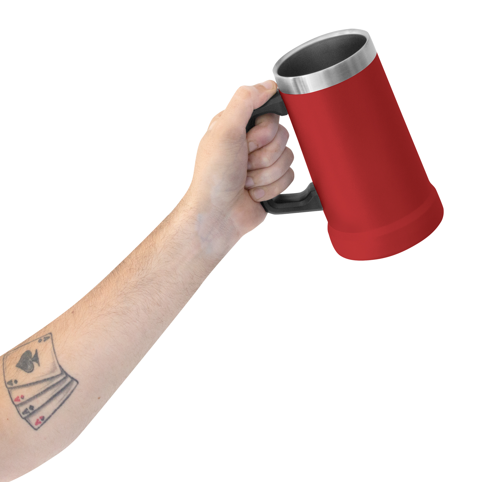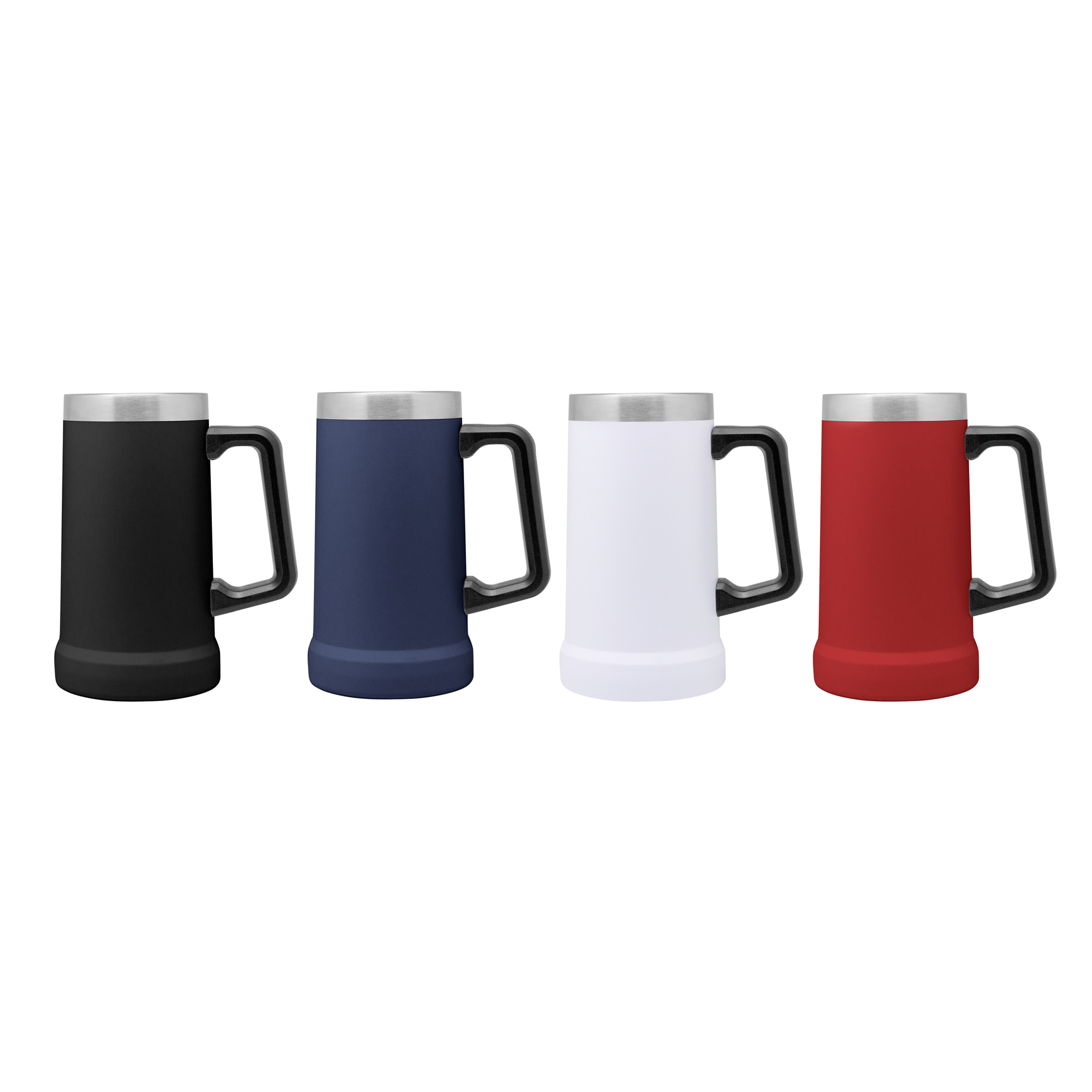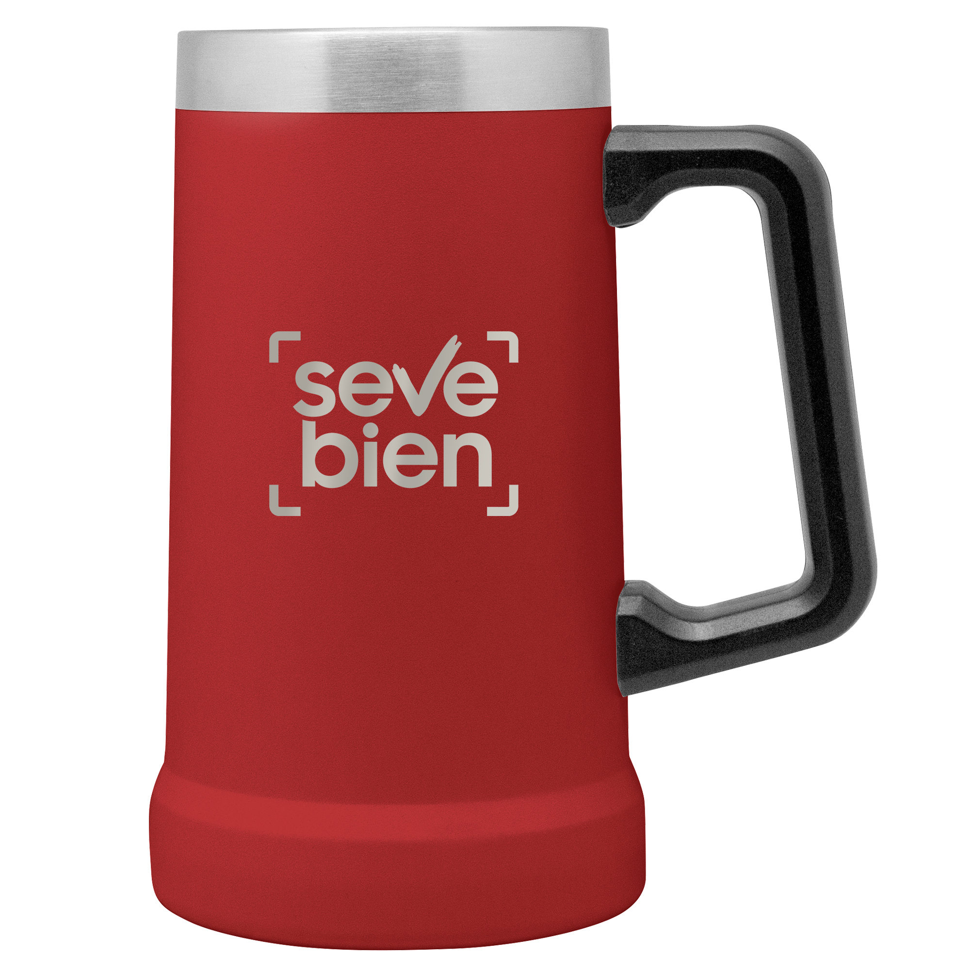 Jarro cervecero doble pared, sellado al vacío. Interior en acero 304 y exterior en acero 201. Mango Plástico. Pintura Powder coat (pintura más duradera y resistente a la corrosión y el paso del tiempo).