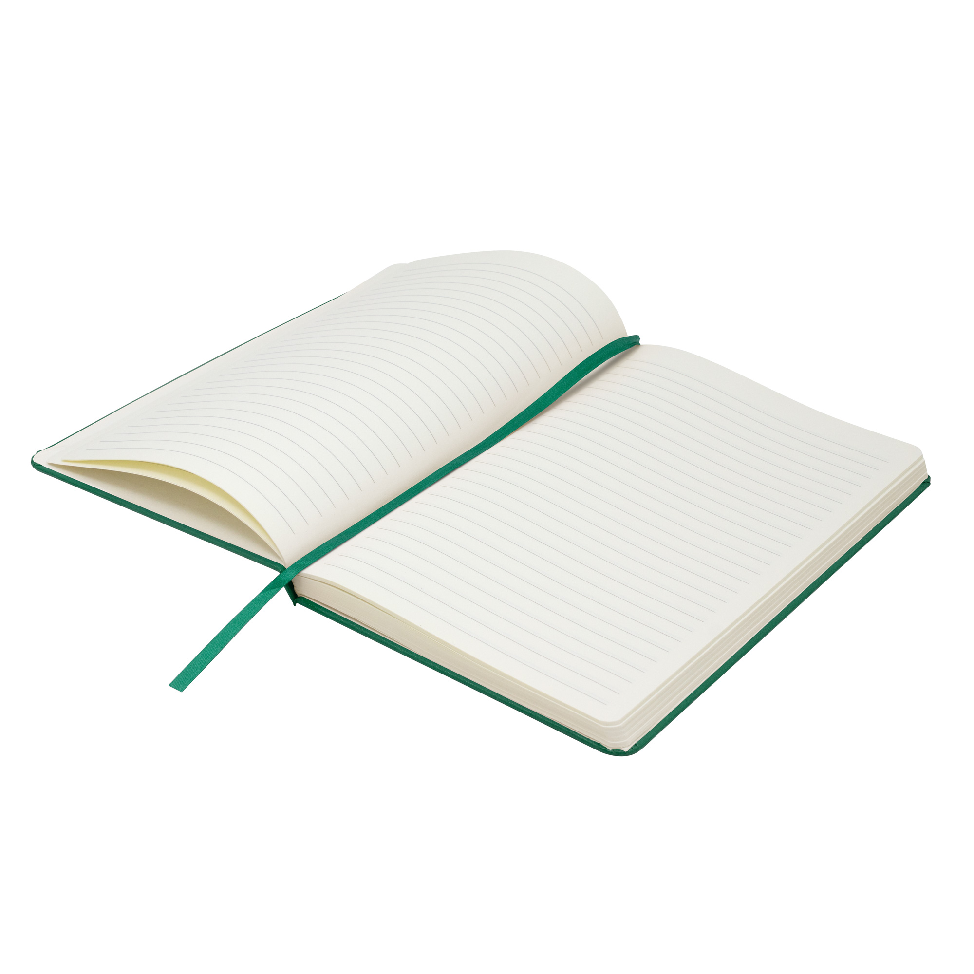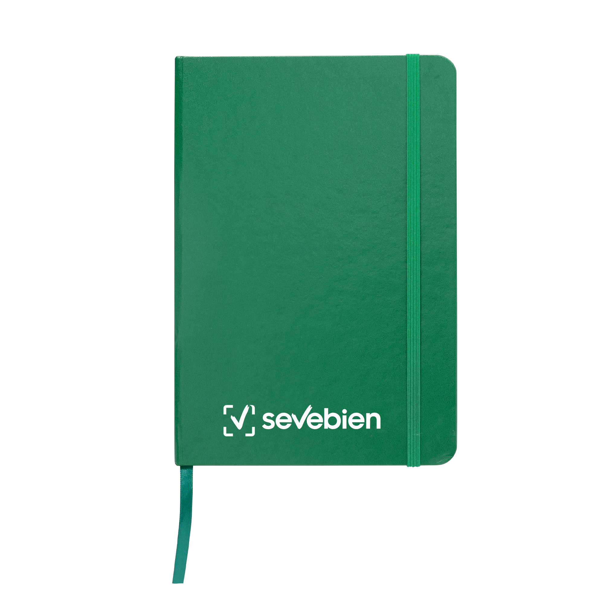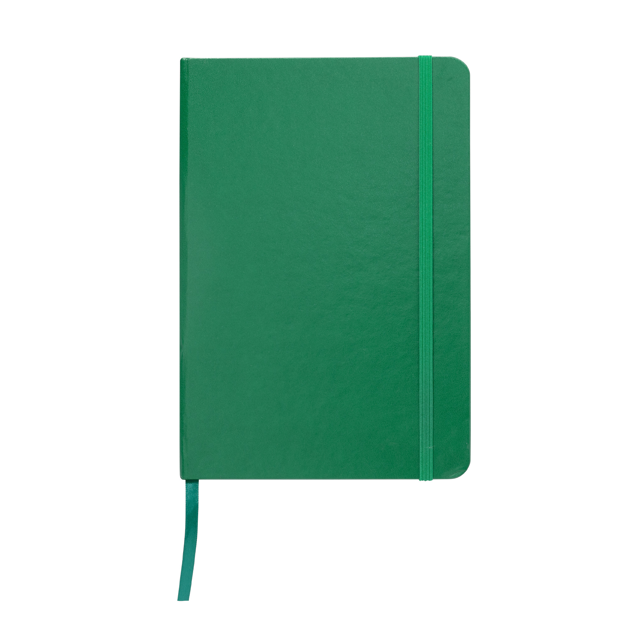 Libreta. Tapa de cartón de 300g recubierta en poliuretano de diferentes colores. Interior de 80 hojas rayadas en papel obra crema de 70g. Encuadernación cosido. Incluye cinta señaladora del color de la tapa. Cierre con banda elástica del mismo color.