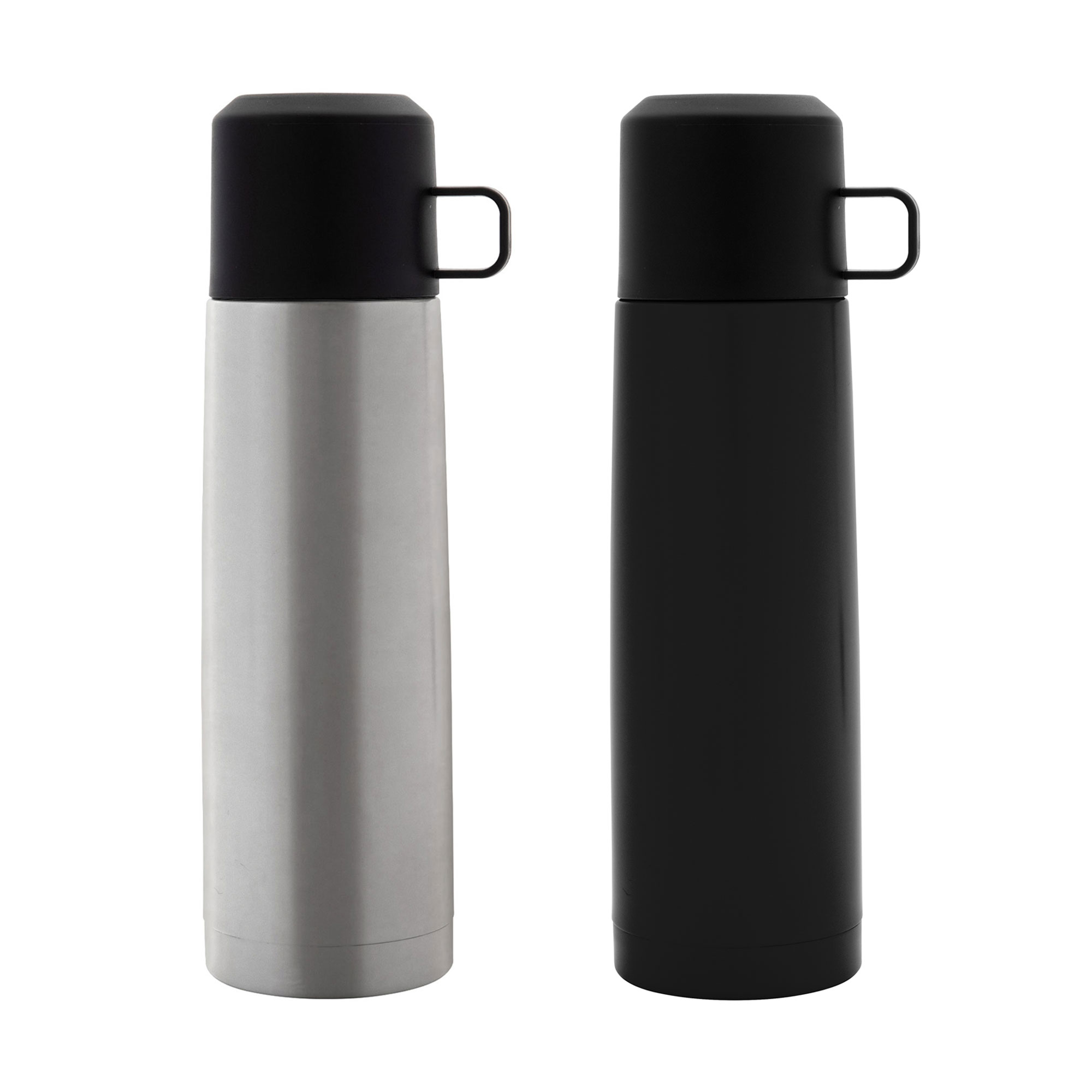 Termo con doble pared sellado al vacío. Tecnología vacuum. Acero inoxidable 304 interior / 201 exterior. Tapa y taza plásticas en color negro. Pintura acabado mate. Mantiene hasta 6 hs la temperatura de las bebidas calientes y 12 hs de las bebidas frías.