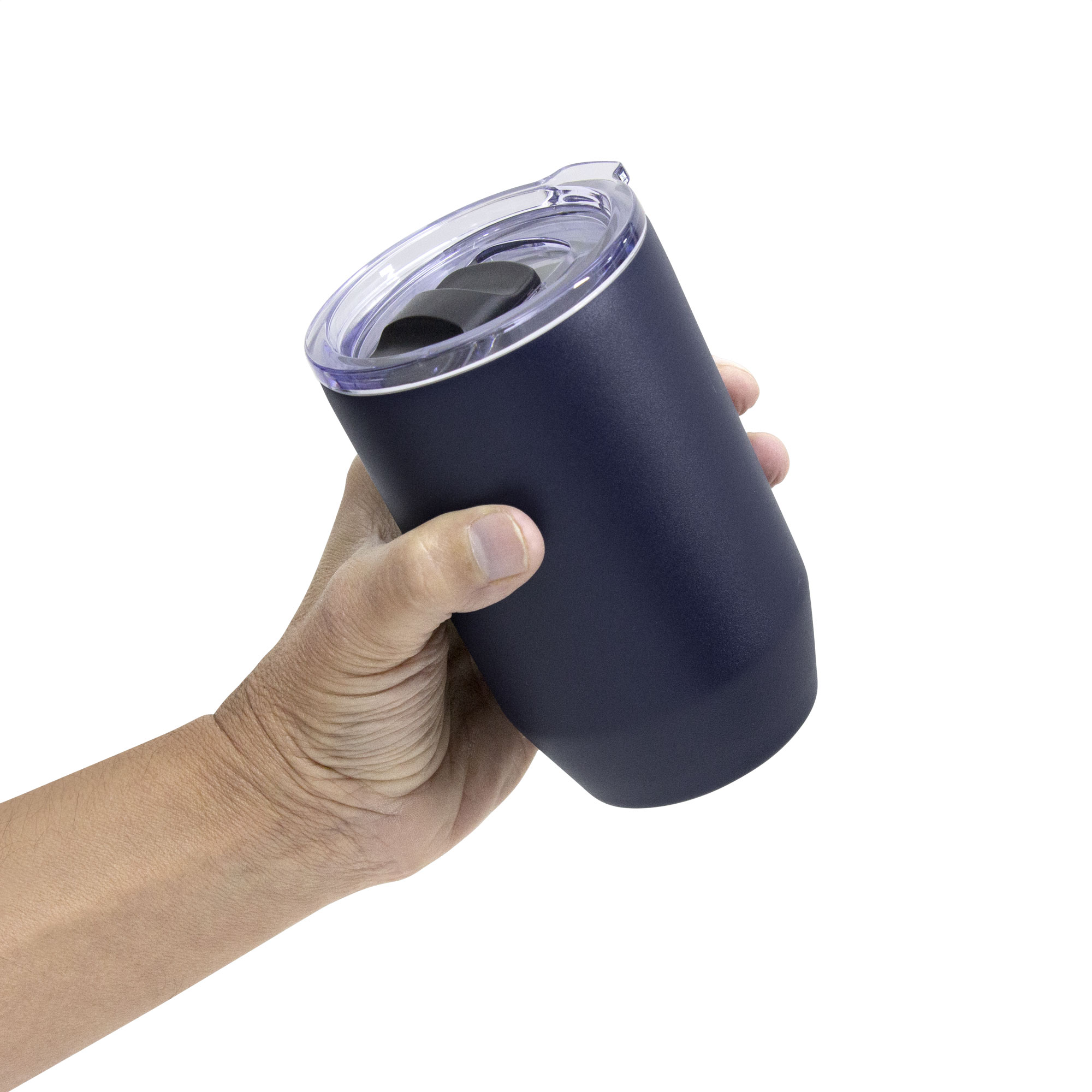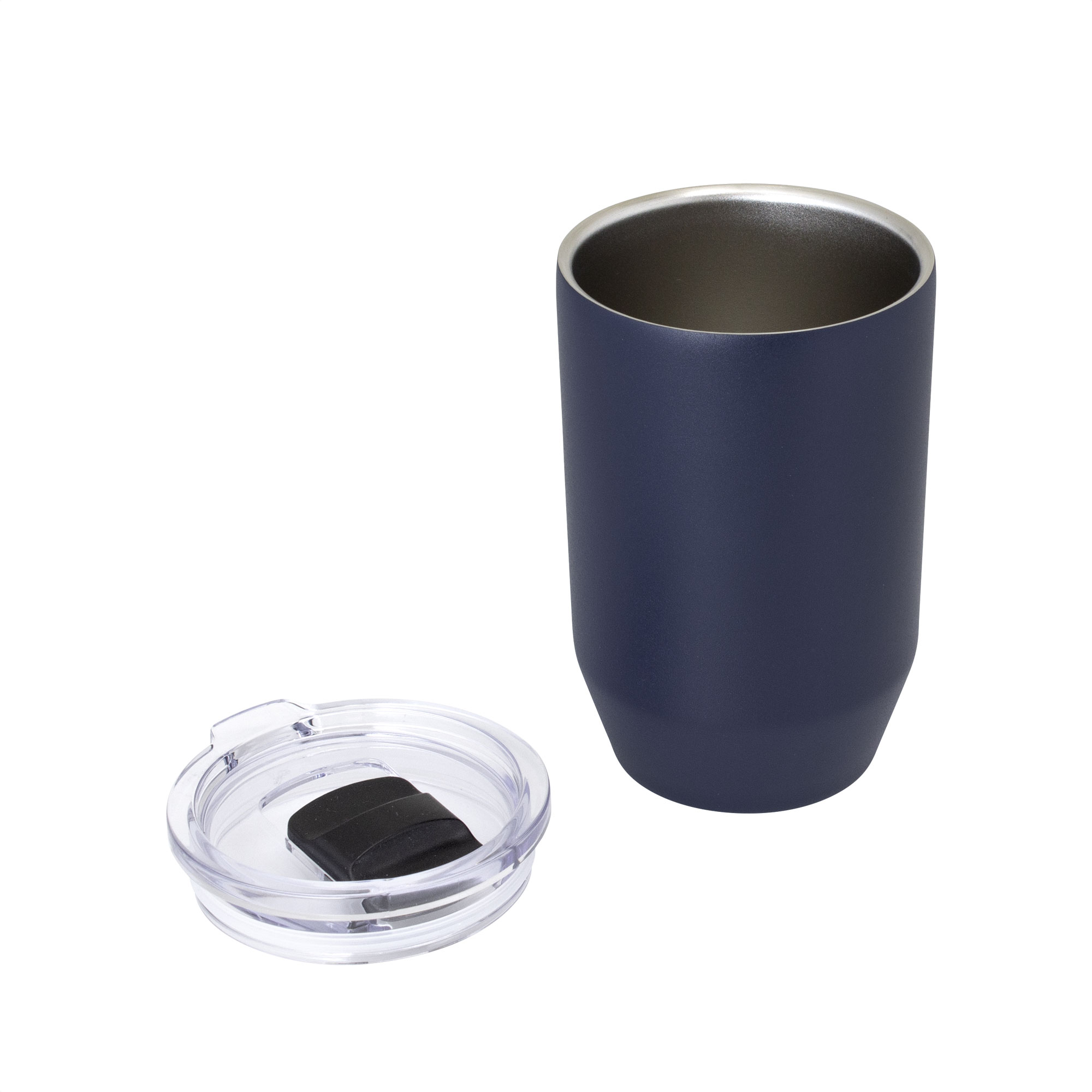 Mug doble pared, sellado al vacío. Mug con aislamiento térmico. Tecnología vacuum. Interior en acero 304 y exterior en acero 201. Tapa de poliestireno transparente a presión, con anillo de silicona y cierre deslizante de color negro. Pintura powder coat (pintura más duradera y resistente a la corrosión y el paso del tiempo). Mantiene hasta 12 hs la temperatura de las bebidas calientes y 24 hs de las bebidas frías.