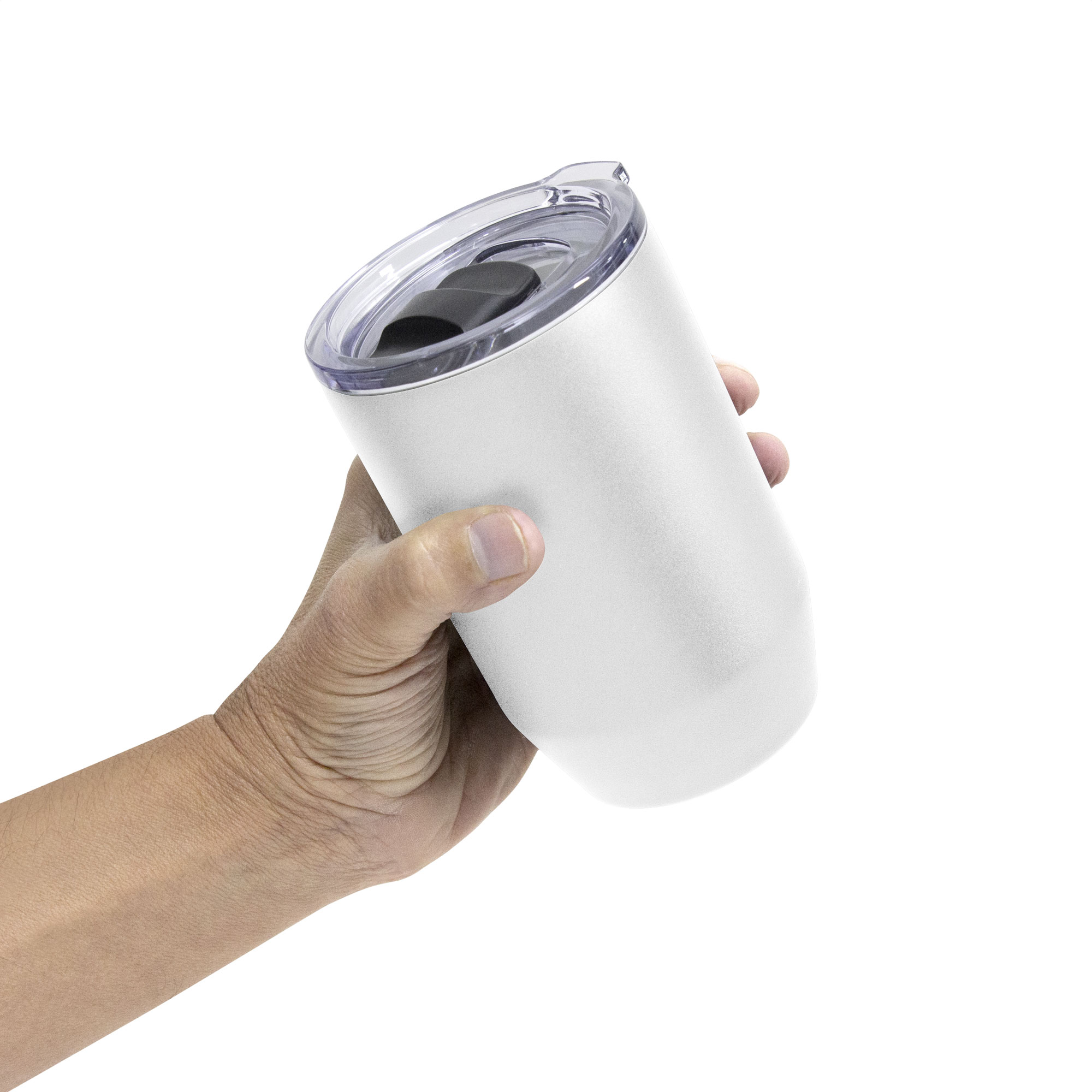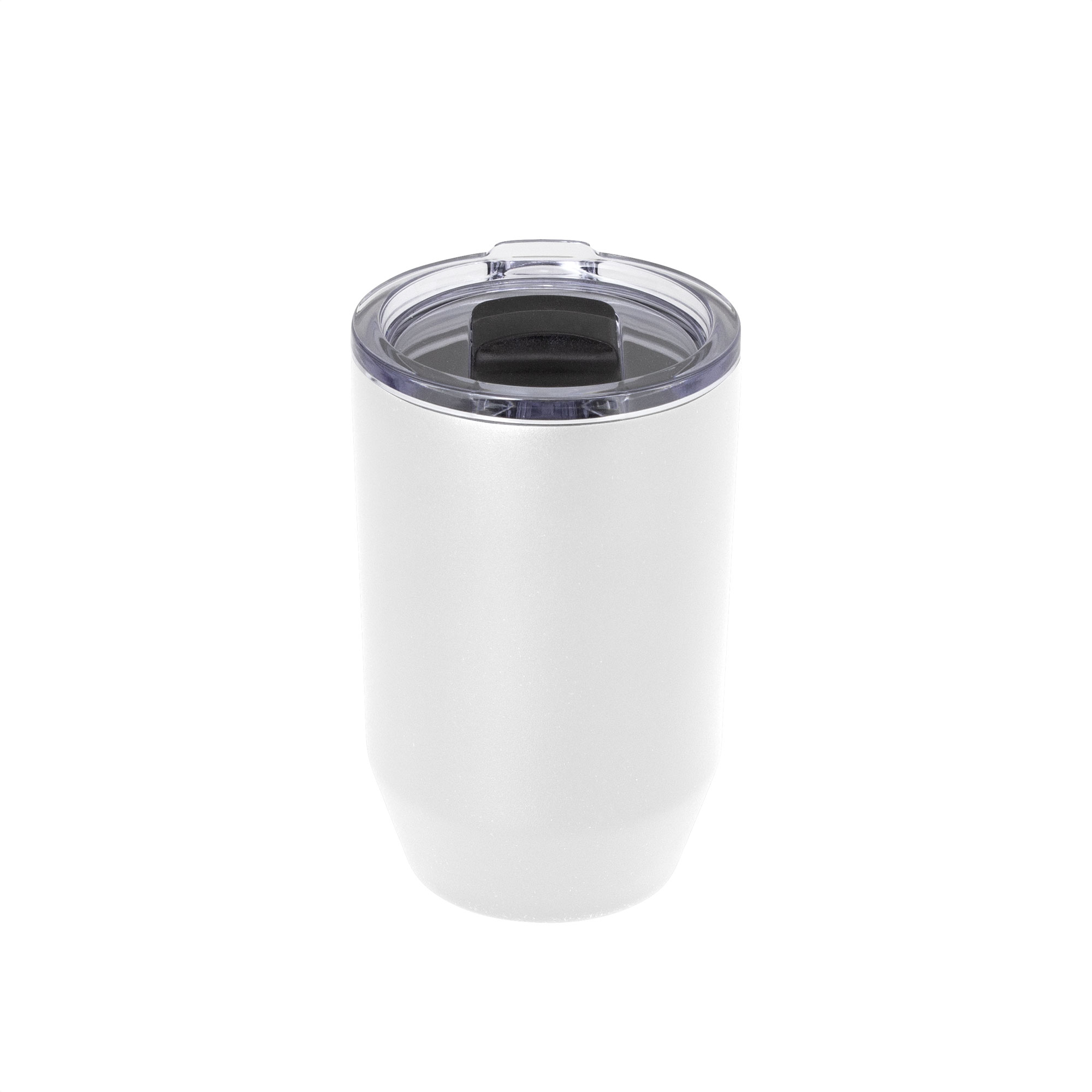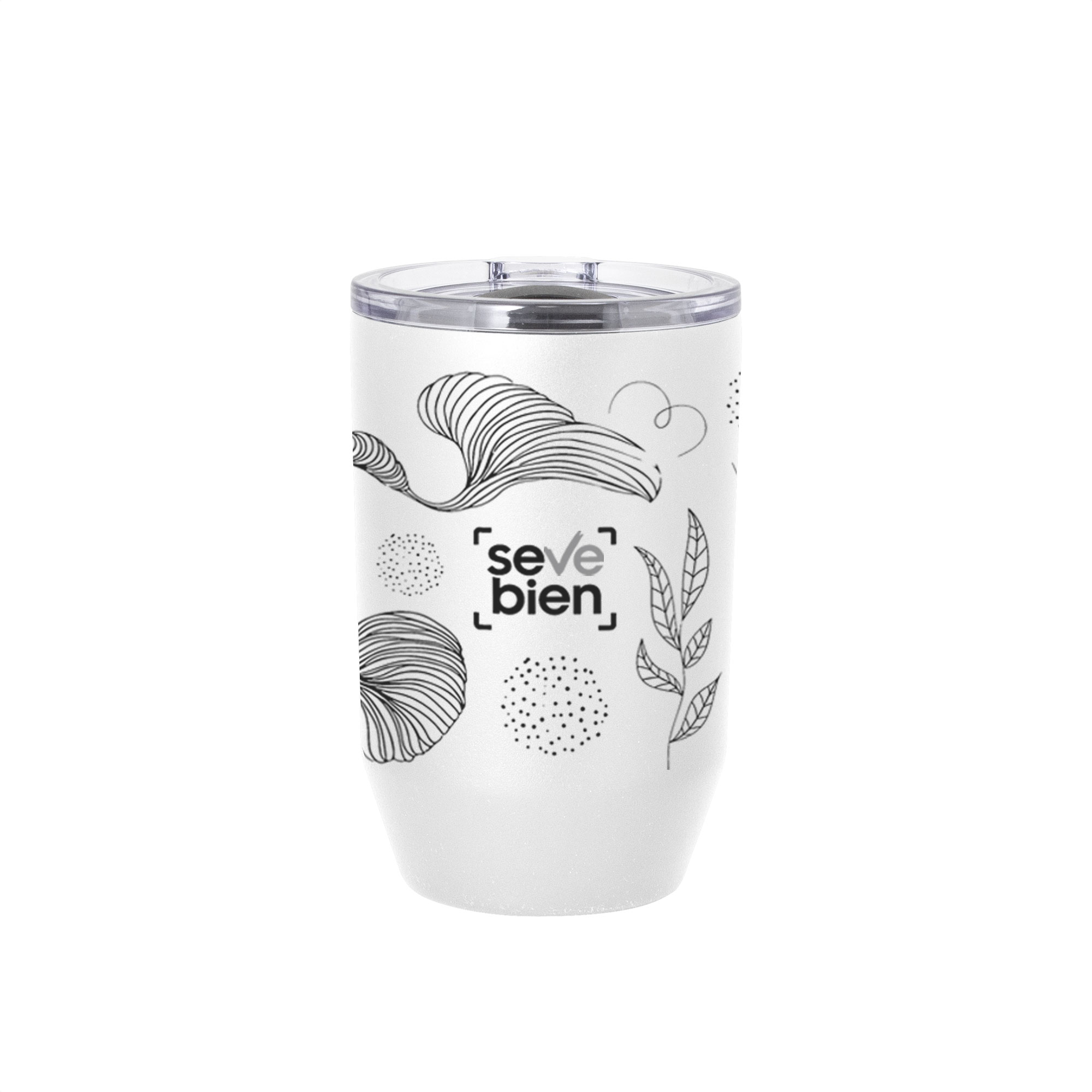 Mug doble pared, sellado al vacío. Mug con aislamiento térmico. Tecnología vacuum. Interior en acero 304 y exterior en acero 201. Tapa de poliestireno transparente a presión, con anillo de silicona y cierre deslizante de color negro. Pintura powder coat (pintura más duradera y resistente a la corrosión y el paso del tiempo). Mantiene hasta 12 hs la temperatura de las bebidas calientes y 24 hs de las bebidas frías.